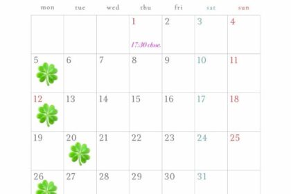 1月の定休日:Closed store in Jan