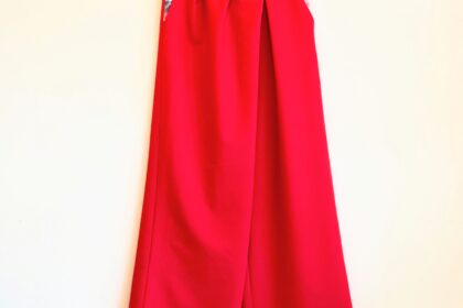 鮮やかなトマトレッド色のワイドパンツ。 ラップパンツ風の仕立てにしていて、動きのあるラインになっています。 無地や柄、どんなトップスと...