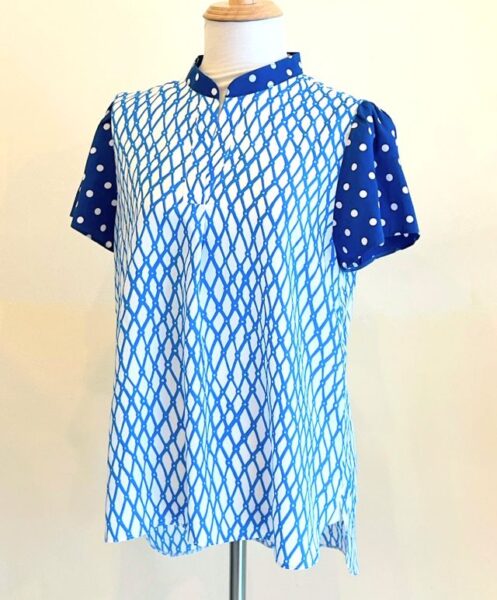 夏らしい爽やかな柄と水玉模様を組み合わせています。