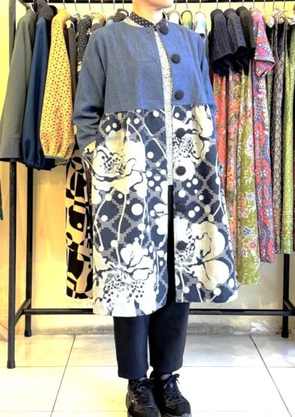 ヴィンテージ風花柄デニムを使った羽織りもの。