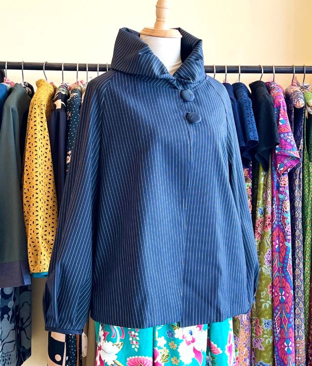 セミオーダーでお作りしたジャケットです。 仕事のシーンで使うということで ピンストライプの紳士生地を 使いました。裏地には派手過ぎない...